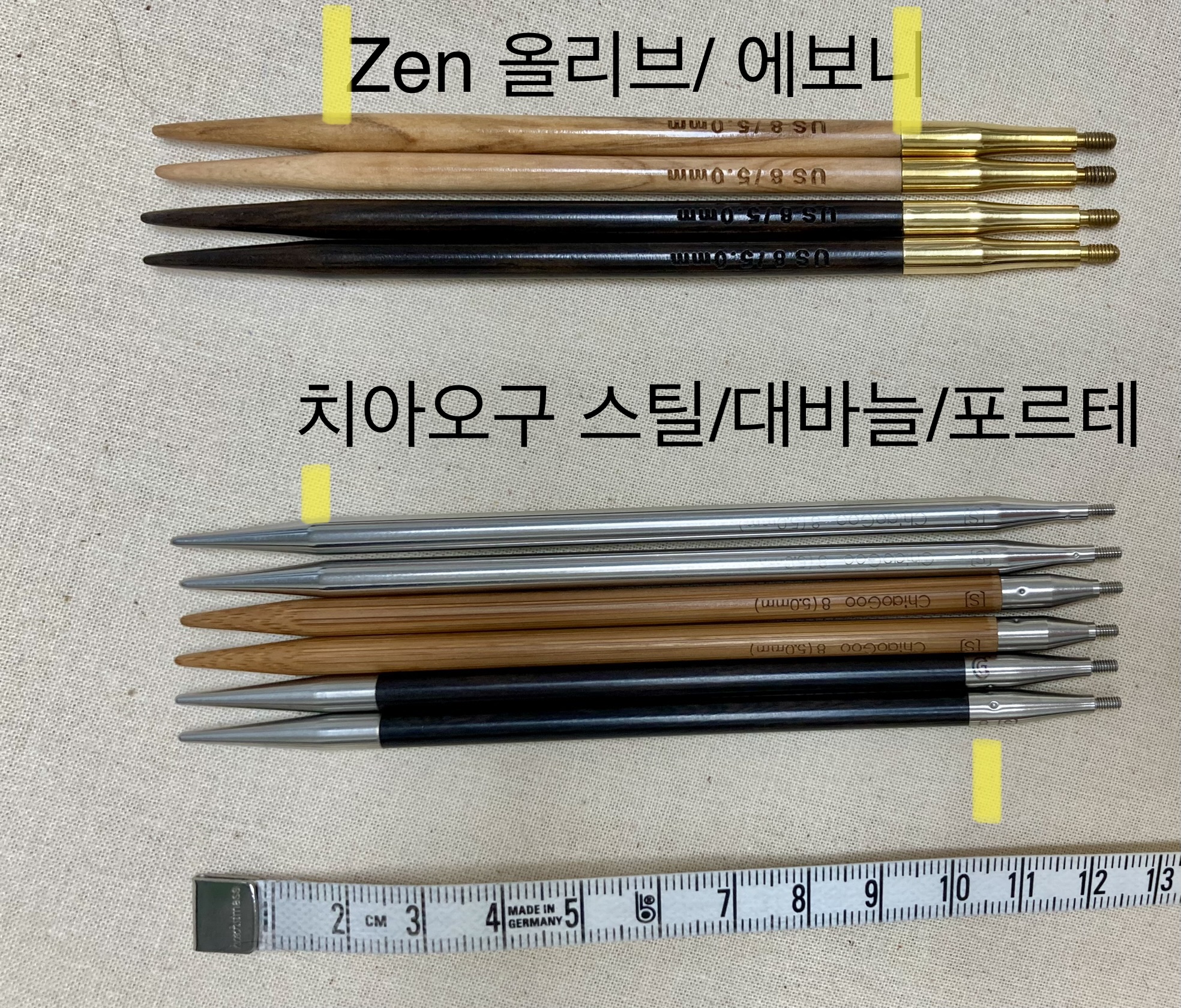 Zen 바늘 3총사의 길이 비교입니다.
