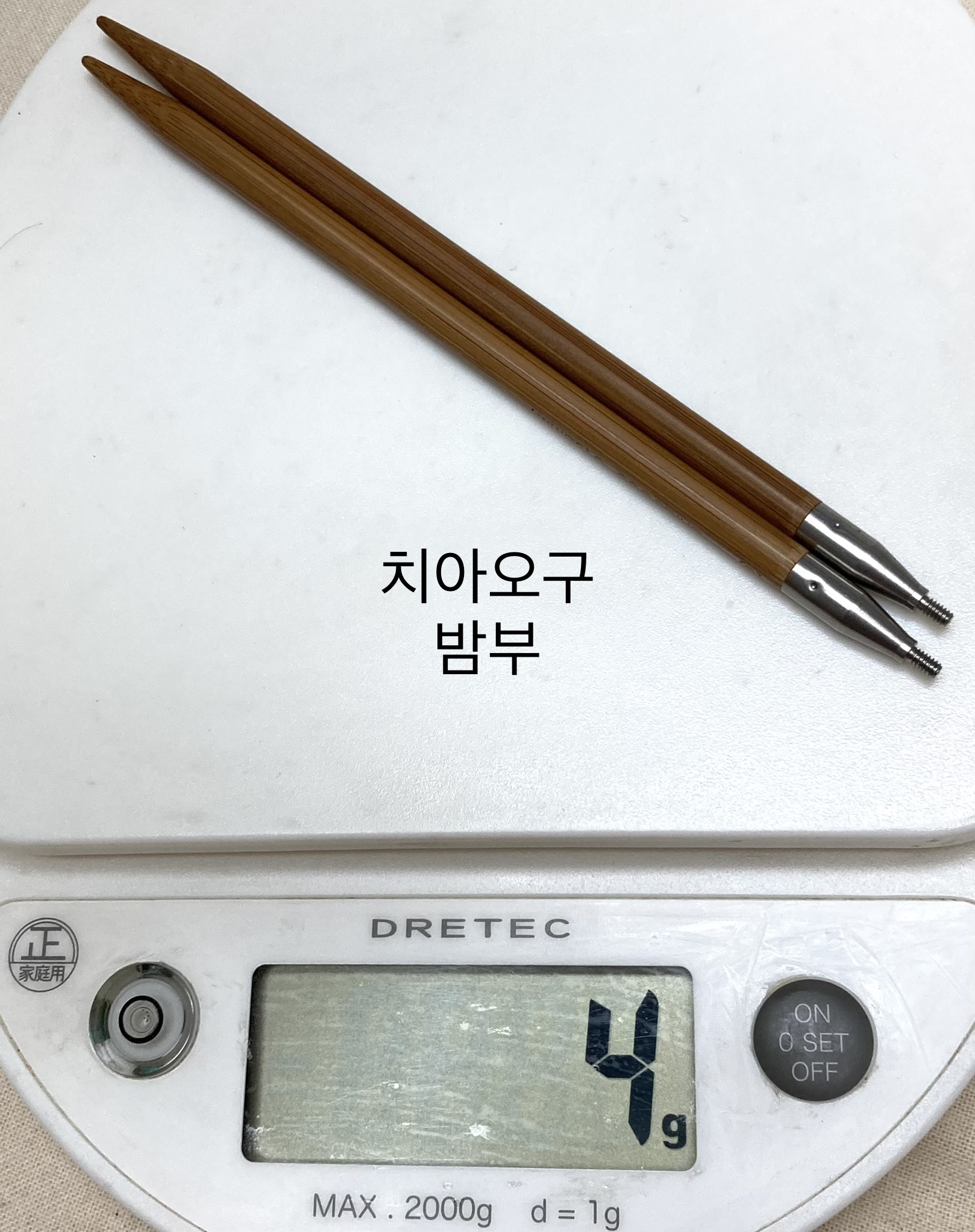 치아오구 밤부의 경우는 무려 4g이 나오는데 장기간 뜨개를 하는 분들이라면 바늘의 무게 차이를 느끼실 수도 있습니다.